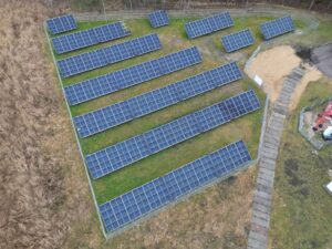 W dniu 6 sierpnia 2021 zakończyliśmy realizację zadania inwestycyjnego dla Miejskiej Oczyszczalni Ścieków w Kaletach, inwestorem projektu było Miasto Kalety. W ramach zadania została wykonana instalacja fotowoltaiczna o mocy 198,8 kWp. Na konstrukcji gruntowej zamontowano 497 sztuk modułów fotowoltaicznych, oraz 5 falowników – cztery o mocy 40 kW oraz jeden o mocy 20 kW. W ramach inwestycji wykonana została również stacja komory transformatorowej oraz został zabudowany układ ograniczający wypływ nadwyżek energii do sieci. Zadanie zostało wykonane w formule EPC, gdzie byliśmy odpowiedzialni za wykonanie projektu budowlanego, wykonawczego i realizację od wywiezienia gruzu i przygotowania terenu i ogrodzenia po wykonanie instalacji fotowoltaicznej.
